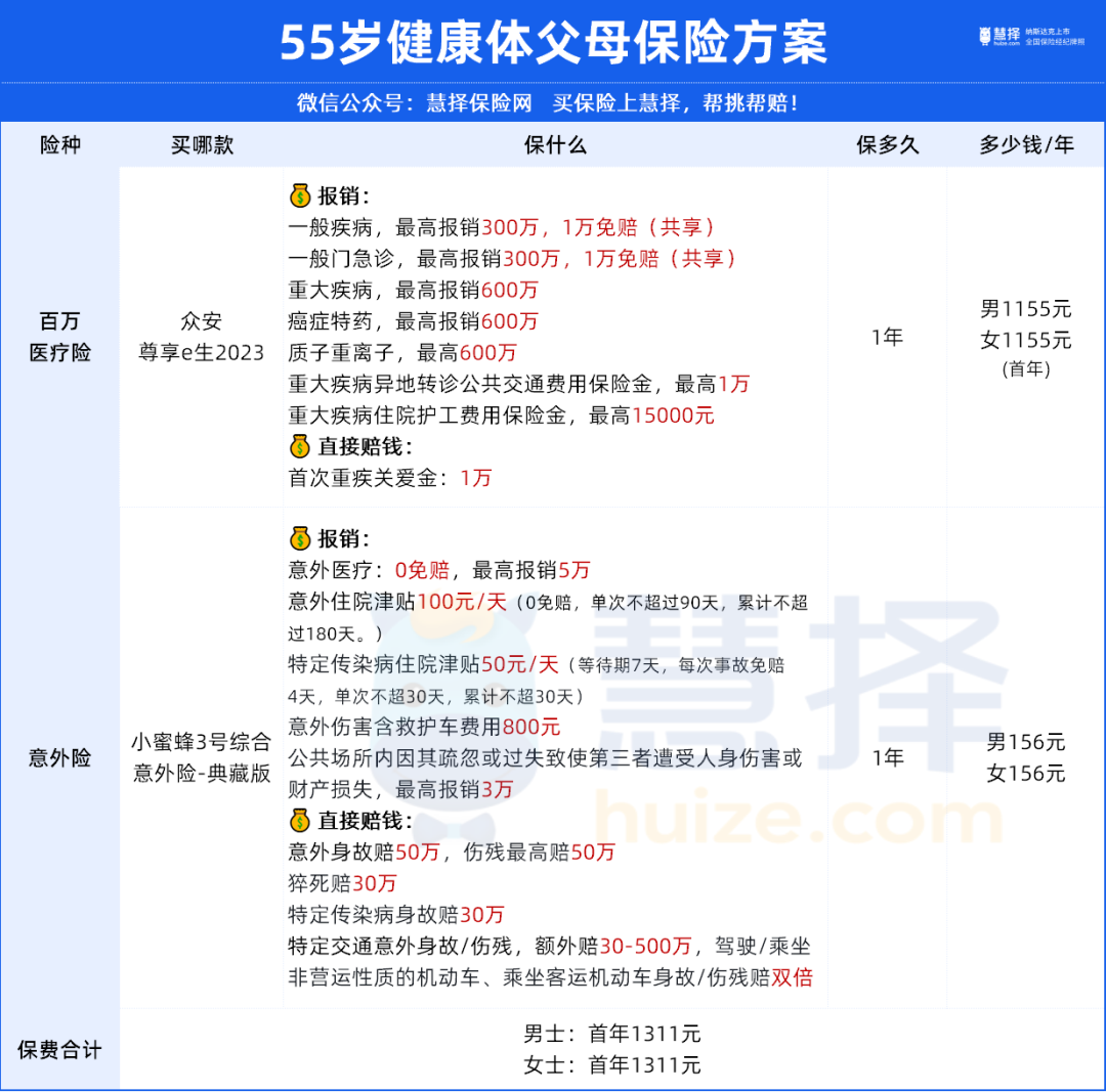 ①健康體方案:百萬(wàn)醫(yī)療險(xiǎn)+意外險(xiǎn)