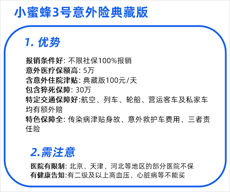小蜜蜂3號(hào)是目前意外險(xiǎn)里的性價(jià)比大佬。