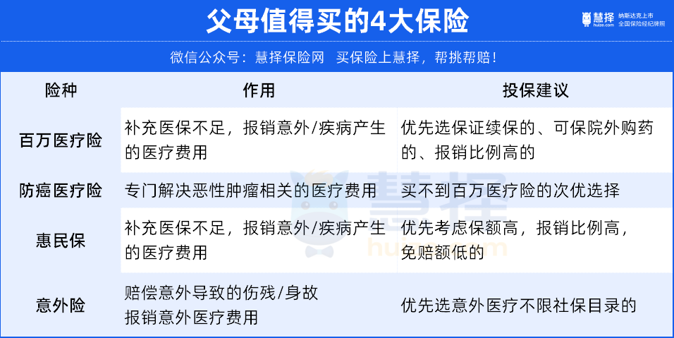 如果給父母安排商業(yè)保險(xiǎn),有上面幾個(gè),基本上就足夠了。
