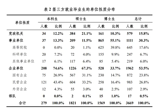 其中,選擇黨政機(jī)關(guān)、事業(yè)單位、國(guó)有企業(yè)的占比分別為15.8%、30.3、23.8%。差不多70%的畢業(yè)生擠進(jìn)了體制內(nèi)。