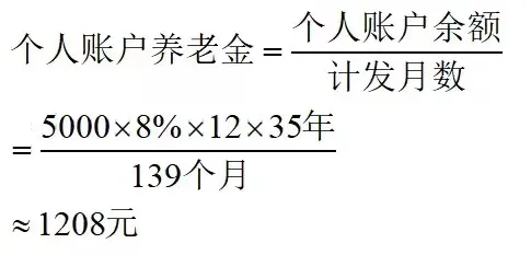 同樣假設(shè)社會(huì)平均工資和他的個(gè)人工資都是5000,并且未來(lái)幾十年不變,按照個(gè)人交8%,35年后,他的個(gè)人養(yǎng)老金賬戶是1208元。