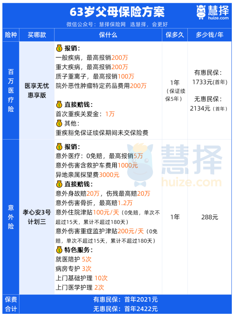 給身體健康狀況較差,或者年齡超過60歲的父母買保險,可以考慮醫(yī)享無憂惠享版+孝心安3號。