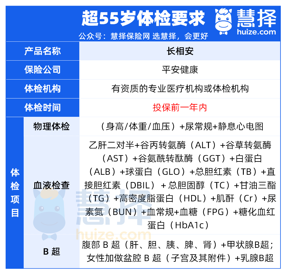 只有提交包含上述體檢項目的體檢報告,經(jīng)保險公司審核通過,才可以投保長相安長期醫(yī)療險。