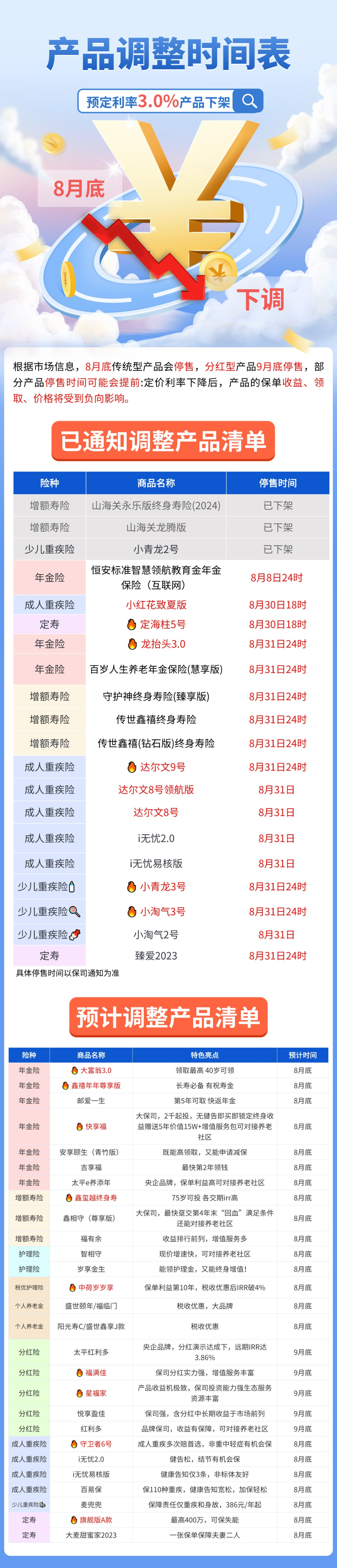 不過提醒一下大家,很多3.0%預(yù)定利率的增額終身壽,在8月31號(hào)前會(huì)陸續(xù)下架。