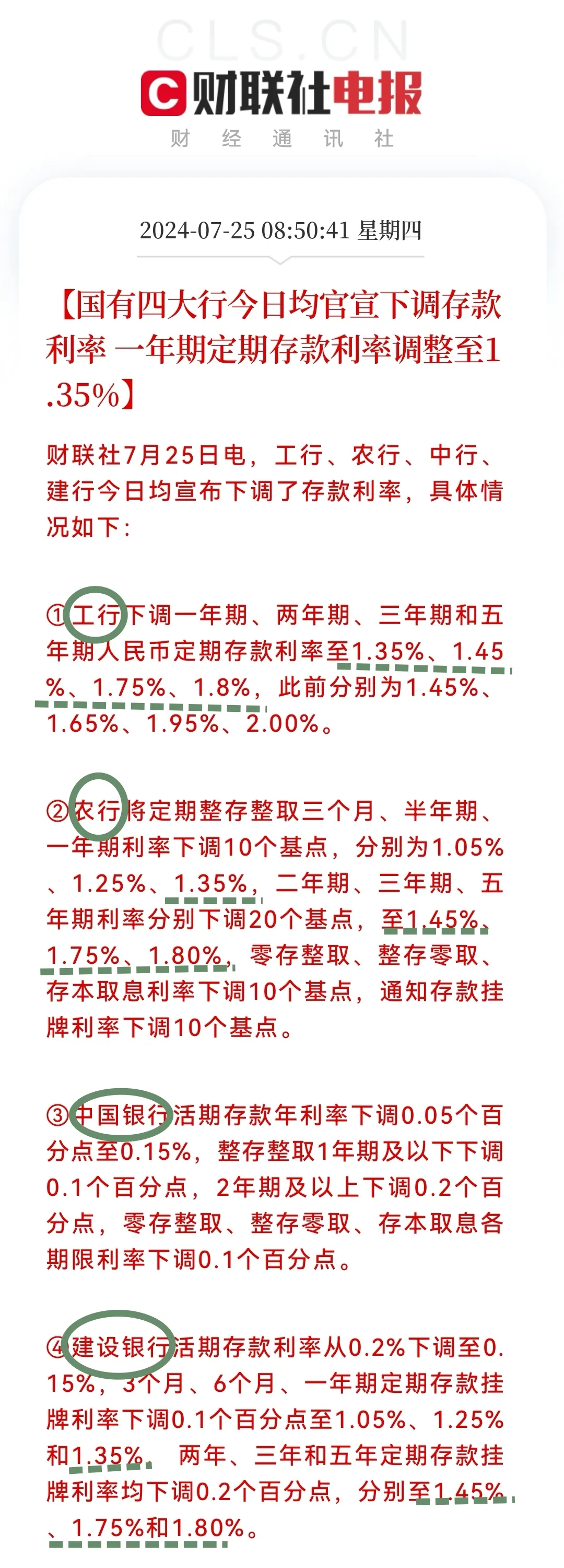 就在上周,應(yīng)該不少朋友關(guān)注了這個(gè)消息:四大國(guó)有行,集體下調(diào)存款利率。