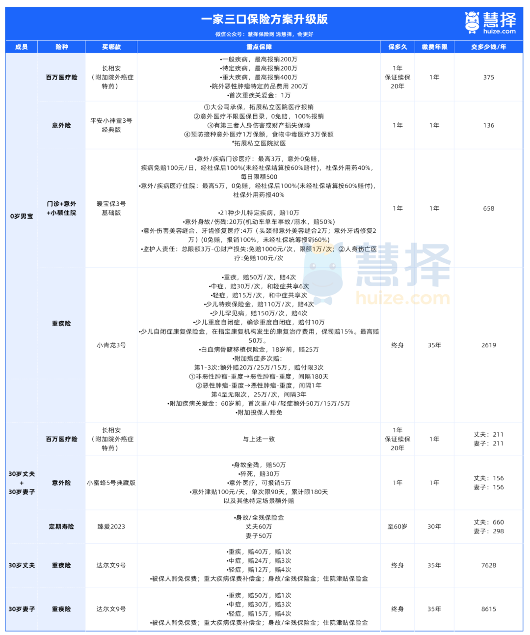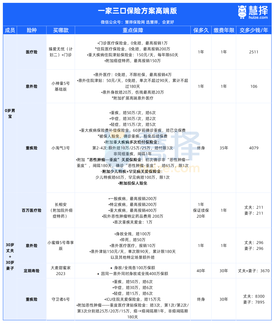 如果預(yù)算充足,每月有2000元保險(xiǎn)預(yù)算的話,可以參考以下方案。