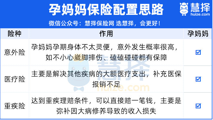 畢竟孕產(chǎn)險(xiǎn),只能保孕產(chǎn)引起的治療,孕媽媽想要更全面的保障,建議配齊3大基礎(chǔ)保障。