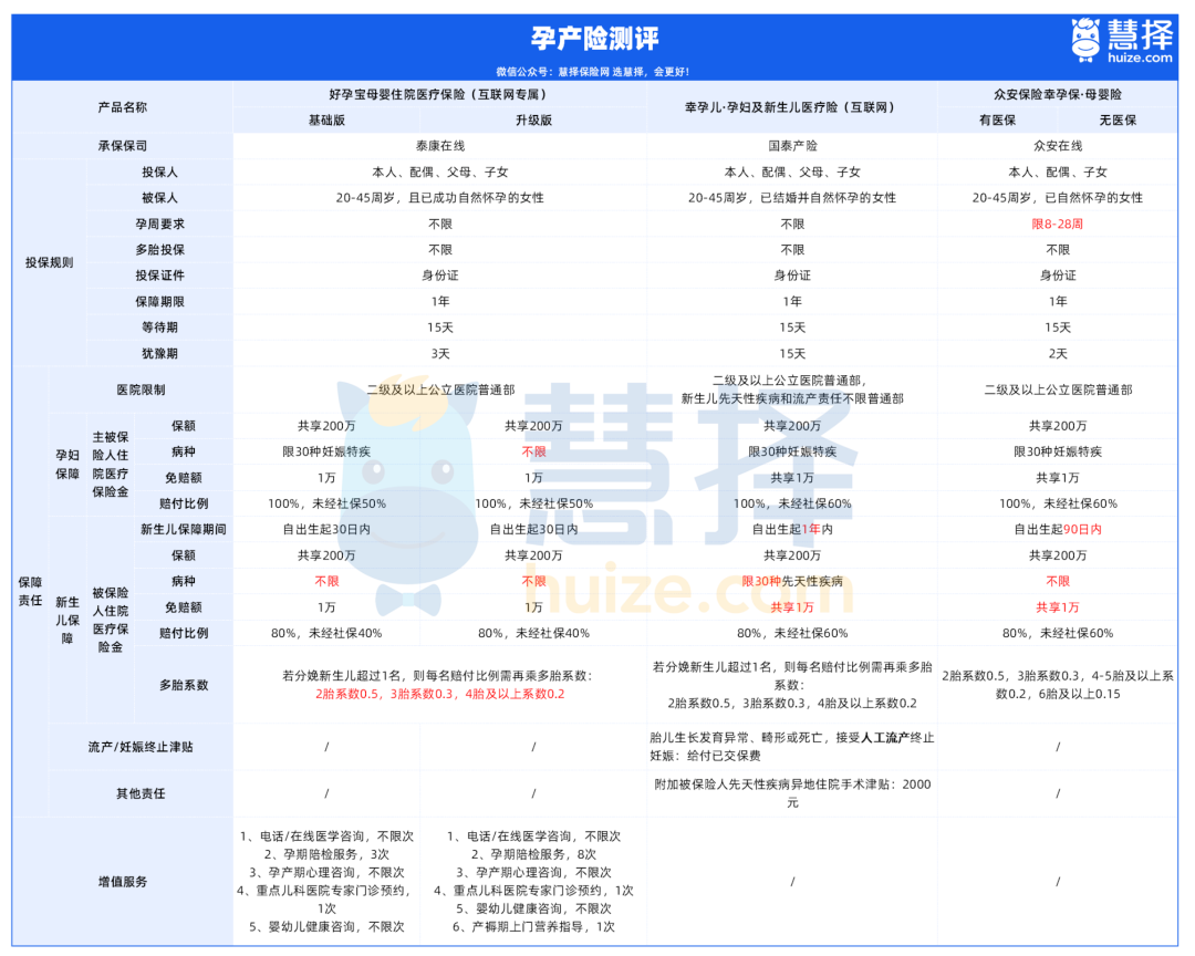 孕產(chǎn)險(xiǎn),哪些值得買?