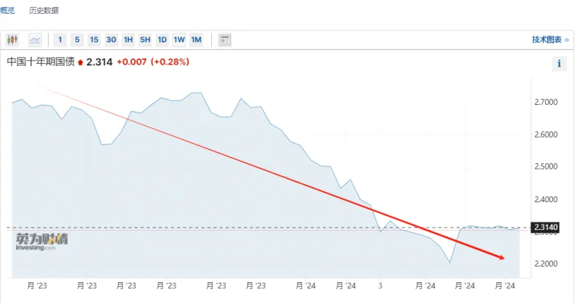 10年期國債利率,從去年調(diào)整利率以后,就直線下降,從2.7%降到2.3%左右。