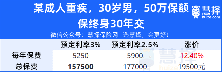 重疾市場接下來的漲價,大概在10%-40%之間(單純只考慮利率下調(diào)的影響,不考慮其他市場因素)。
