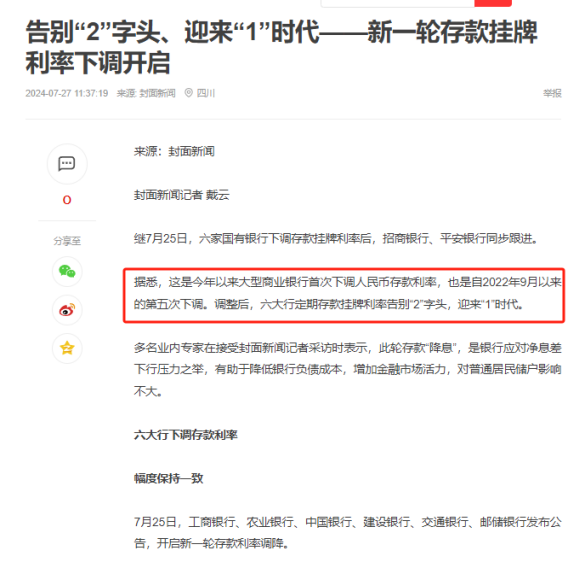 剛進8月,各大銀行就紛紛下調存款利率,進入1%時代!