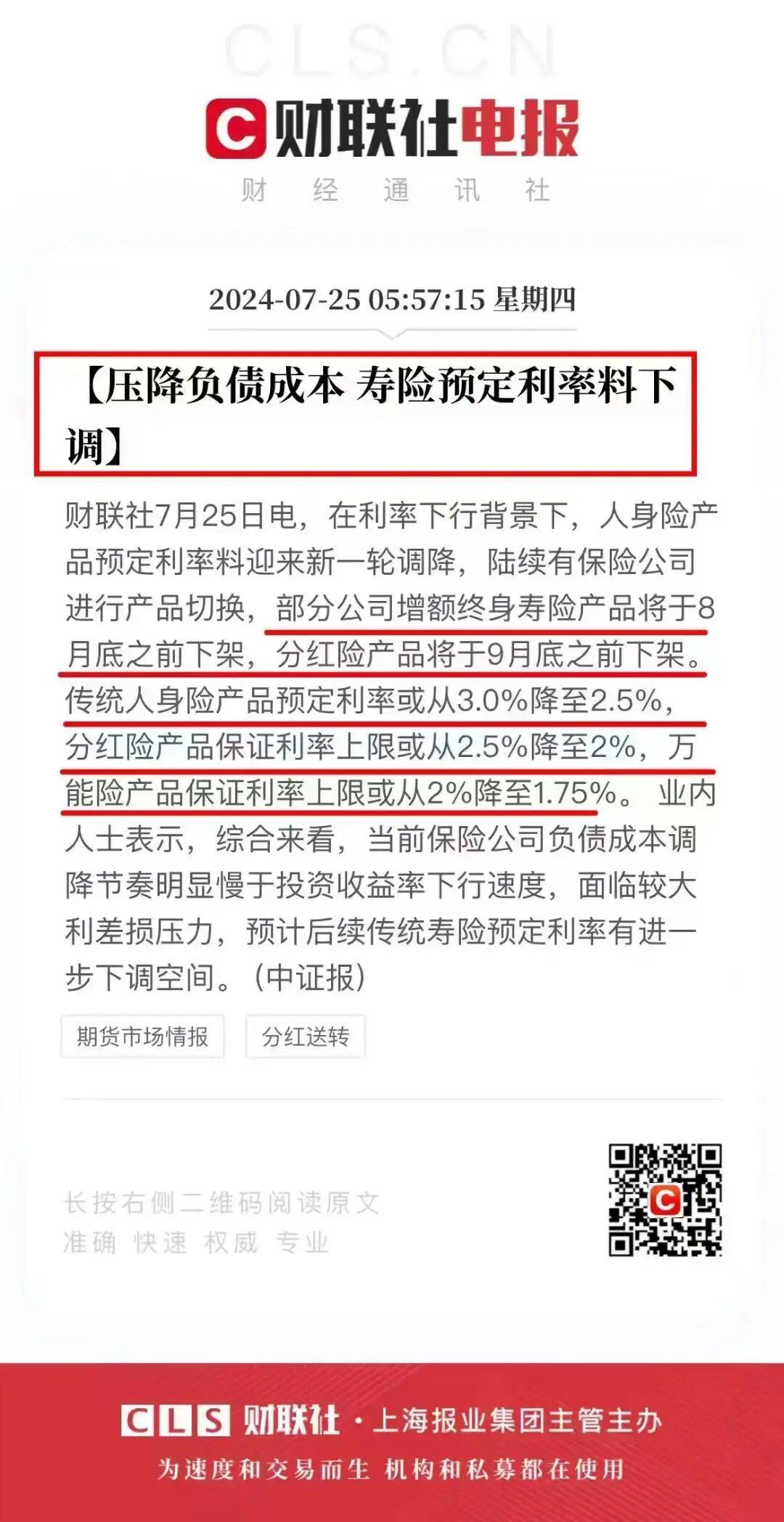 根據(jù)媒體爆料,部分公司增額終身壽險產(chǎn)品將于8月底之前下架,分紅險產(chǎn)品將于9月底之前下架。