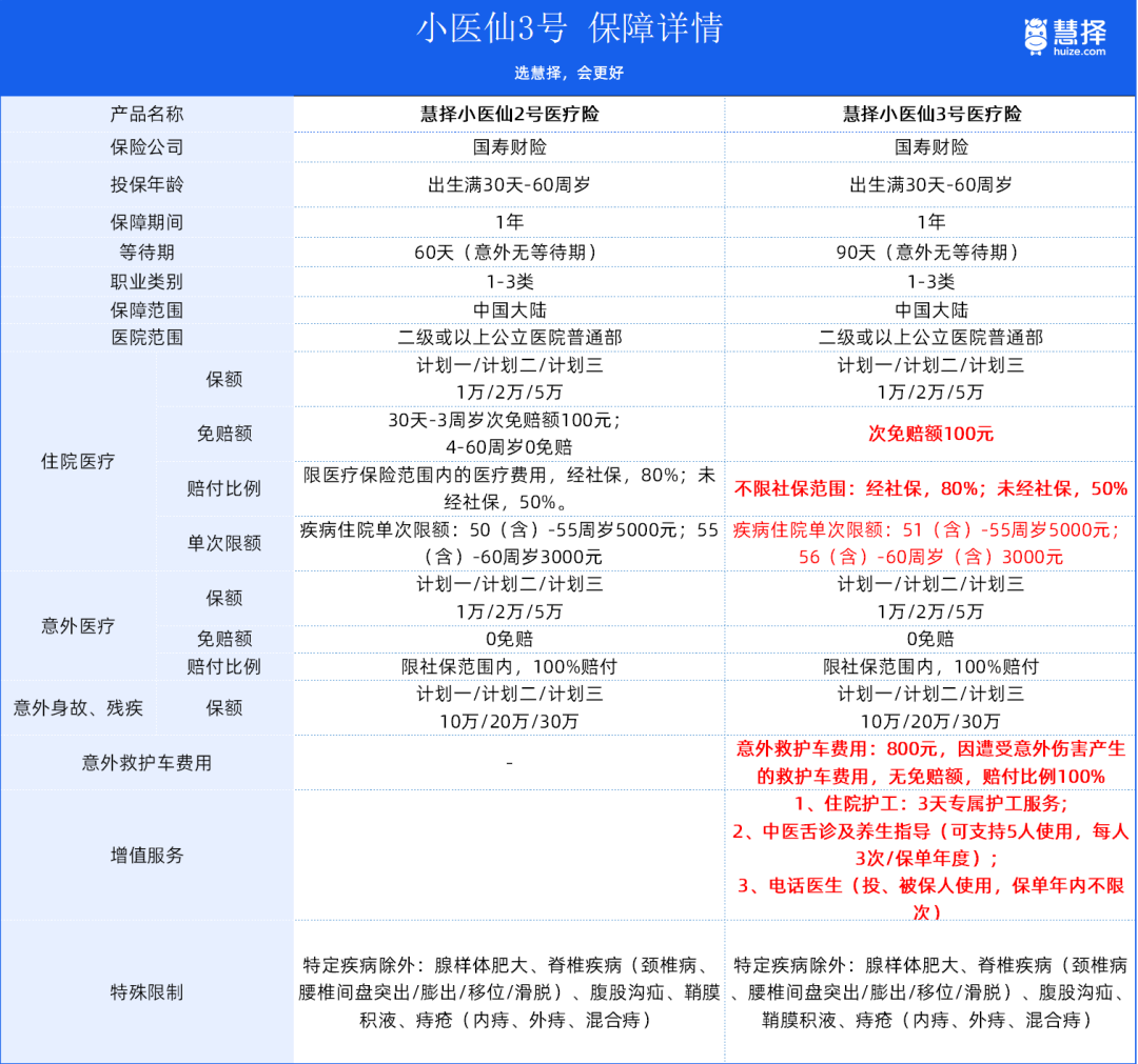 小醫(yī)仙3號在保障全面提升的同時,價格相比于小醫(yī)仙2號,并沒有多少漲幅。具體如下: