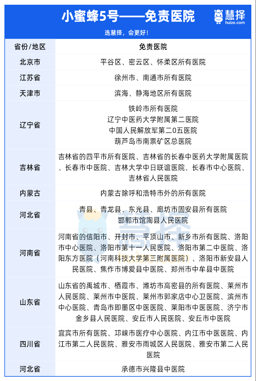 為規(guī)避騙保風險,意外險基本都有免責醫(yī)院,小蜜蜂5號的免責醫(yī)院如下: