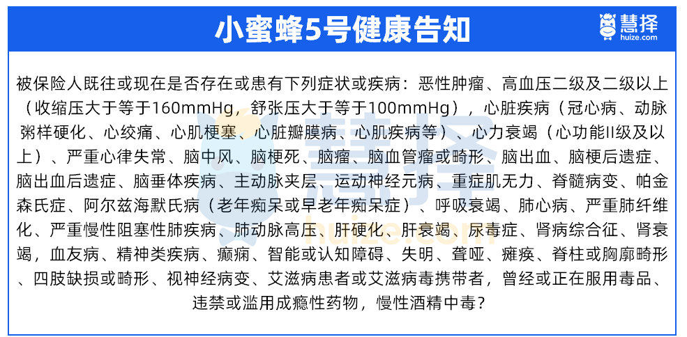 爸媽患有老年癡呆、肝硬化、高血壓二級及以上和心臟疾病的,都買不了小蜜蜂5號。