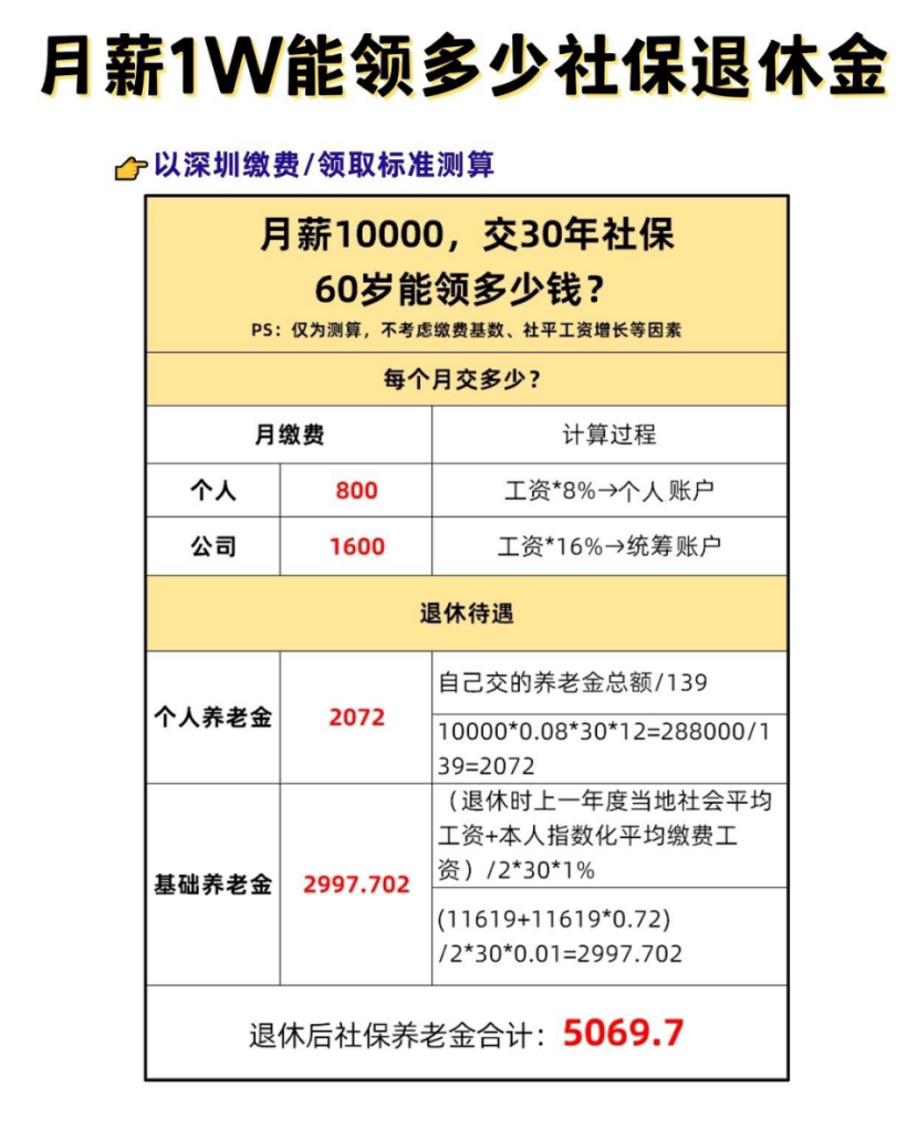 舉例子,月薪1萬,在深圳交30年社保,交費(fèi)的條件一直穩(wěn)定不變,