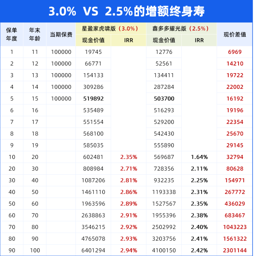 保單利益遠(yuǎn)過預(yù)定利率2.5%的增額壽險(xiǎn)。