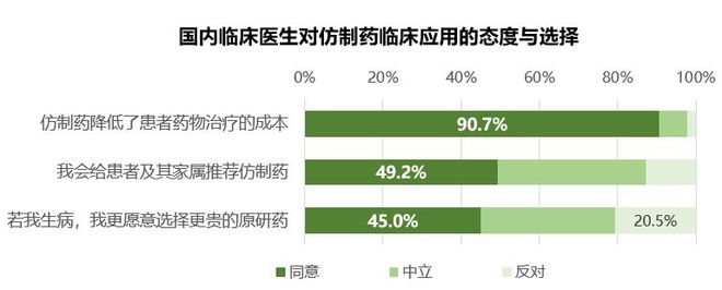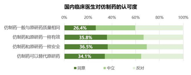 之前就有研究調查過國內醫(yī)生對仿制藥的認可度,其中僅有1/3左右的人,認為仿制藥與原研藥一樣有效。