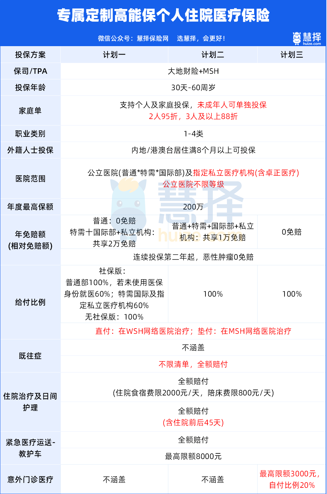 除此之外,MSH高能保的選擇方案也很靈活,有三種計劃。