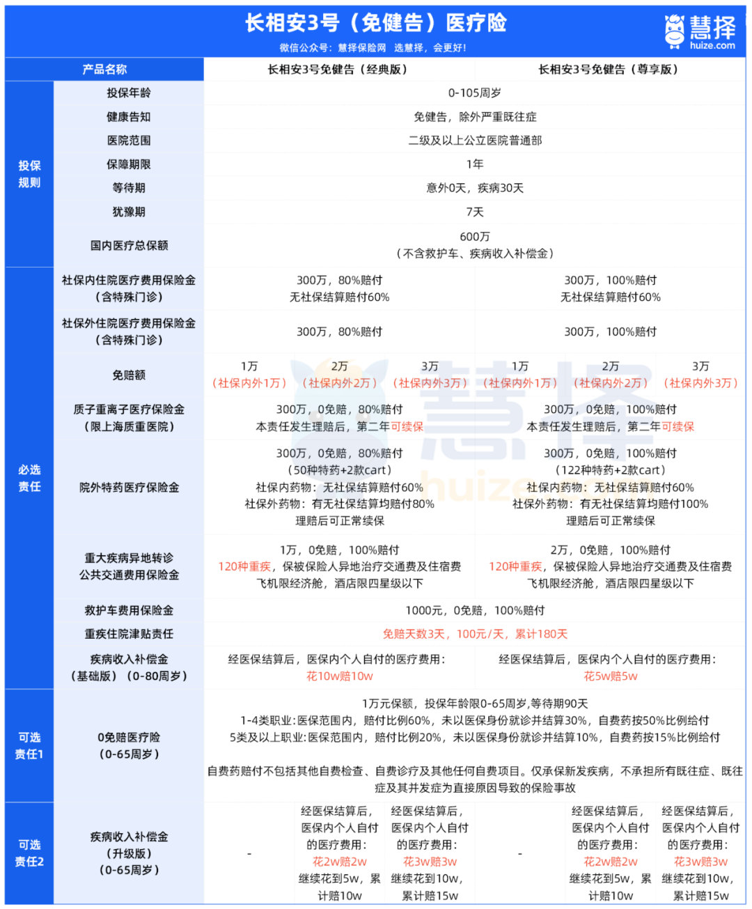 長相安3號(免健告)分經(jīng)典版和尊享版,主要的亮點有: