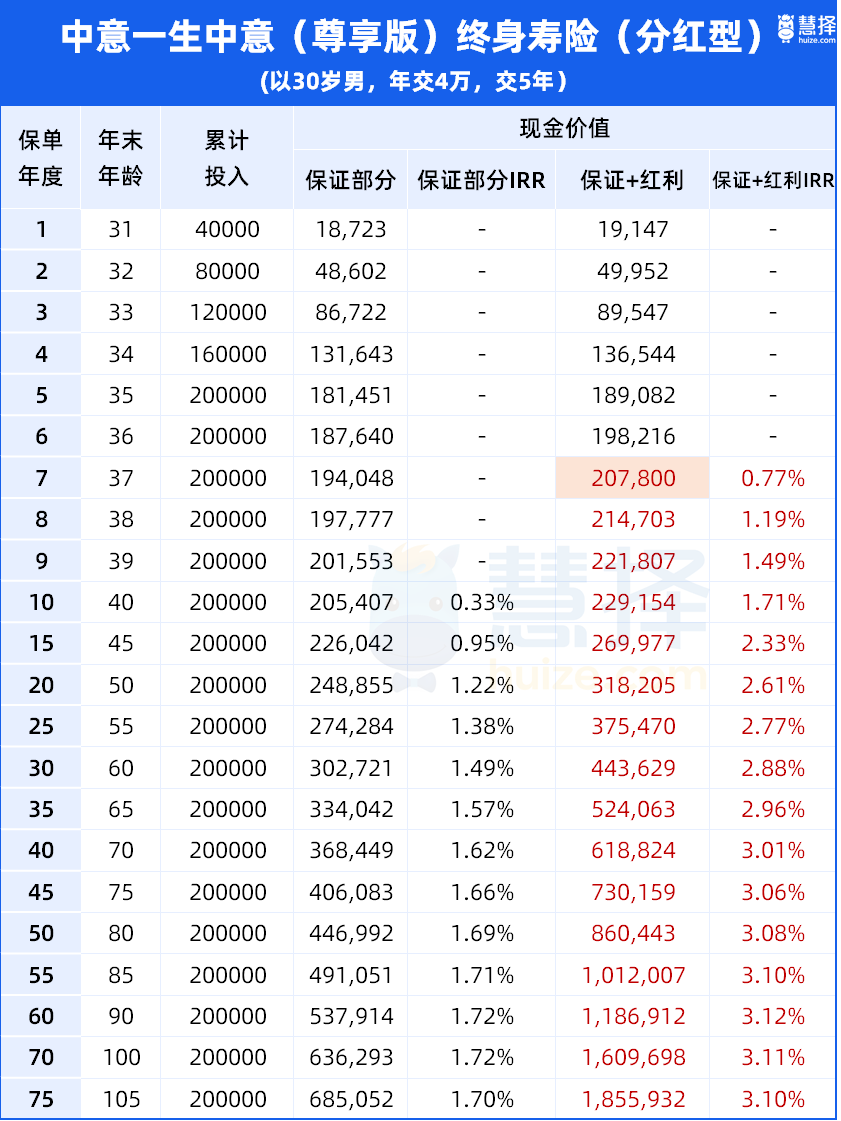一生中意尊享版(分紅型),保單前期現(xiàn)金價(jià)值很高,“回血”快。
