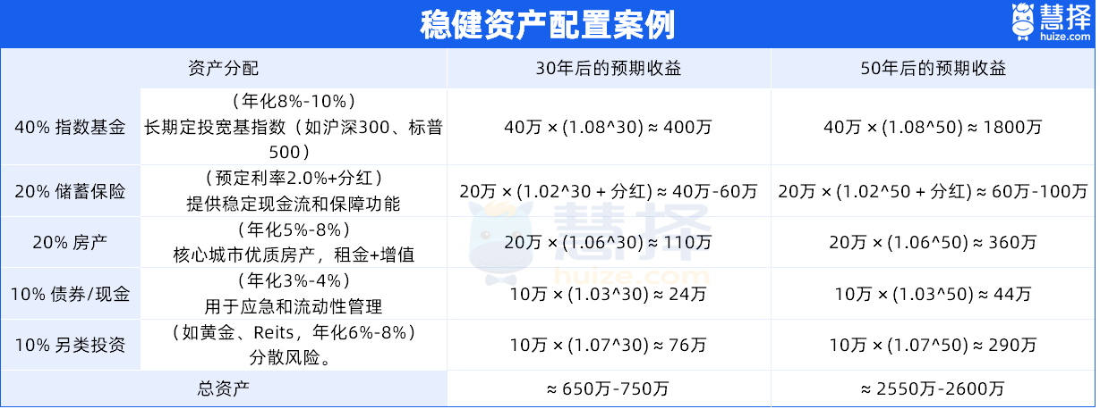 按照這個(gè)邏輯,它給出了一份穩(wěn)健資產(chǎn)的配置案例。