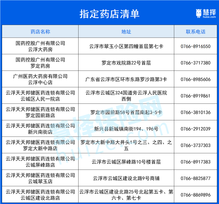 (4)到店自取:保險(xiǎn)公司將電話聯(lián)系被保險(xiǎn)人確認(rèn)領(lǐng)取地址并發(fā)送領(lǐng)藥憑證,被保險(xiǎn)人需攜帶處方、領(lǐng)藥憑證等相關(guān)材料至“云浮惠民保”指定藥店進(jìn)行領(lǐng)取。指定藥店清單詳下。