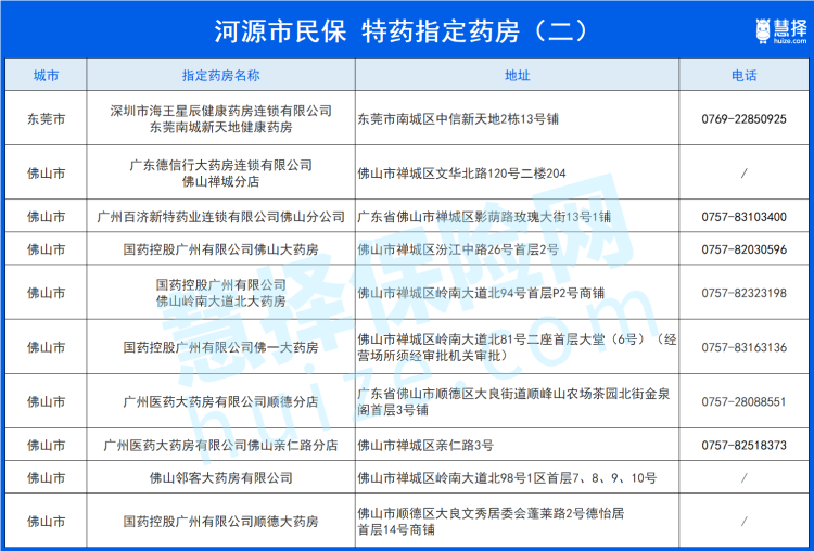 由于篇幅限制的原因,河源市民保特藥指定藥房只能放一部分,想看完整的朋友可以到微信公眾號 “河源市民保” 查看。