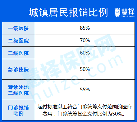 以城鎮(zhèn)居民為例,報銷比例如下: