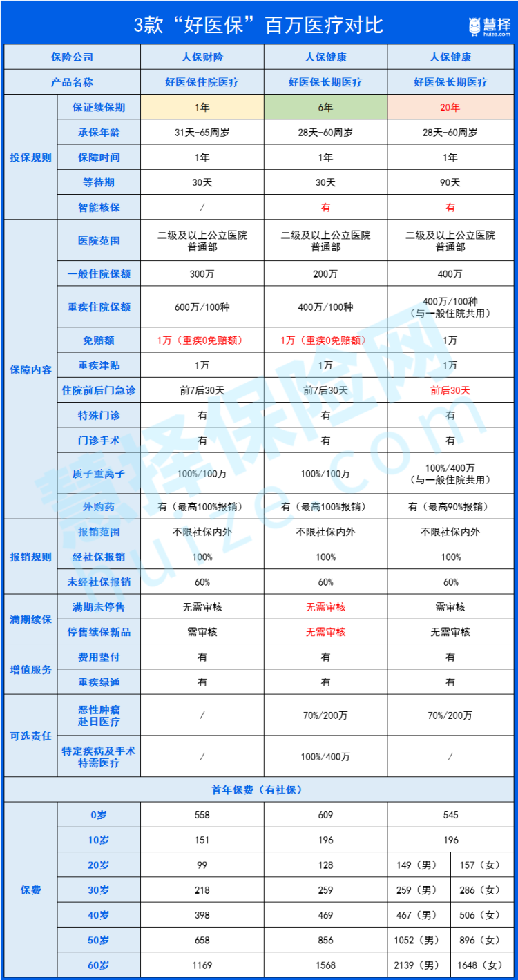 好醫(yī)保1年期、6年期、20年期橫向測評